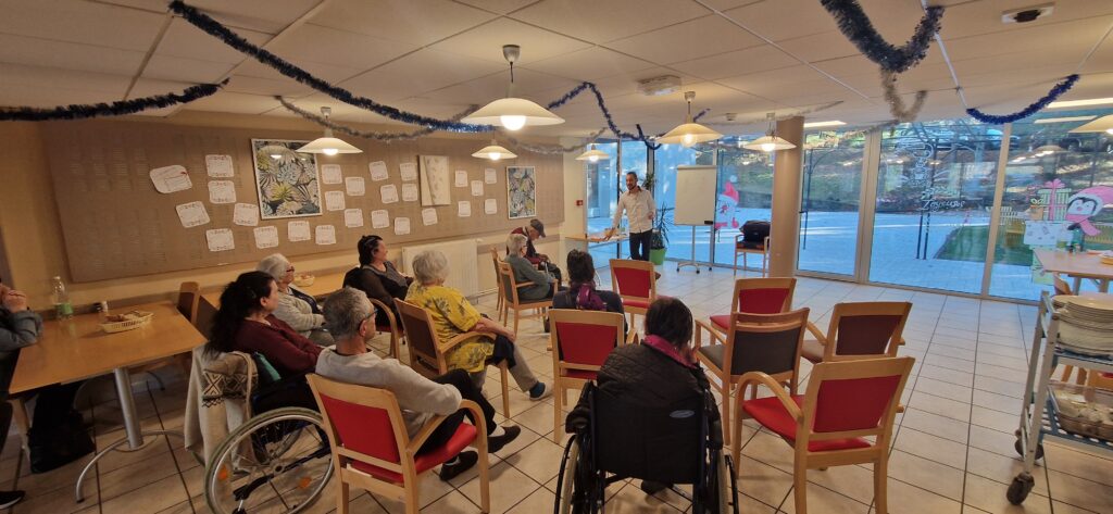 Lors de la dernière séance organisée au sein de l’établissement, les résidents présents ont été très réceptifs et ont beaucoup apprécié l’intervention. Ils ont participé activement au petit questionnaire de fin, et les réponses apportées par M. Torre ont été claires et parfaitement adaptées au public.
