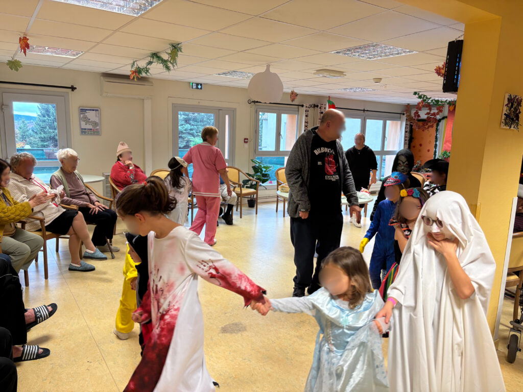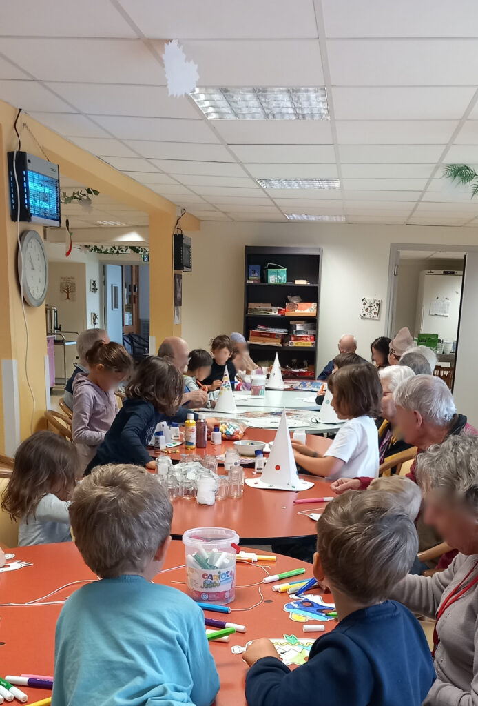 Durant la matinée, 16 enfants et 15 résidents ont uni leur savoir-faire pour fabriquer de magnifiques masques et décorations sur le thème d’Halloween.
