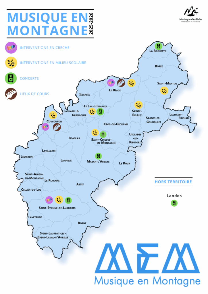 La Communauté de communes Montagne d’Ardèche créé au 1er septembre 2023 son école de musique, suite à la dissolution du Syndicat mixte Ardèche Musique et Danse.
